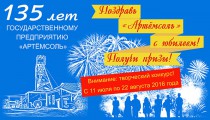 По случаю предстоящего празднования 135-летия нашего соледобывающего предприятия отдел коммуникаций со СМИ объявляет о начале проведения творческого конкурса «Поздравь «Артемсоль» с юбилеем!».